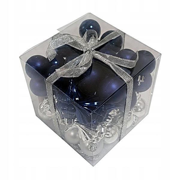 Opakowanie Bombki na choinkę nietłukące 50szt srebrne, granat