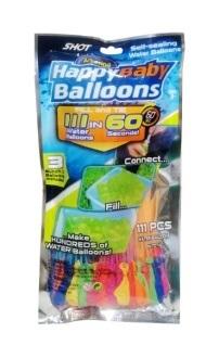 111 baloników, które po wypełnieniu wodą stają sie bombami wodnymi. W zestawie znajduje się także adapter za pomocą którego łatwo bedzie nalać wody z kranu do każdego z baloników. Produkt zapakowany w worek.