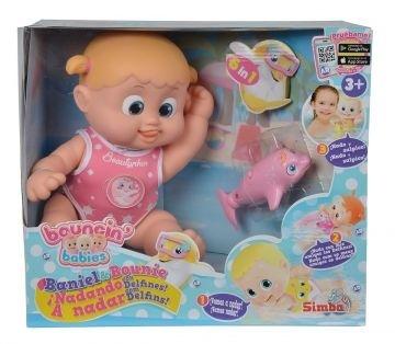 alka w różowym stroju kąpielowym zaczyna pływać, gdy do jej brzuszka przyczepimy jej przyjaciela delfinka. Delfin potrafi pływać samodzielnie.