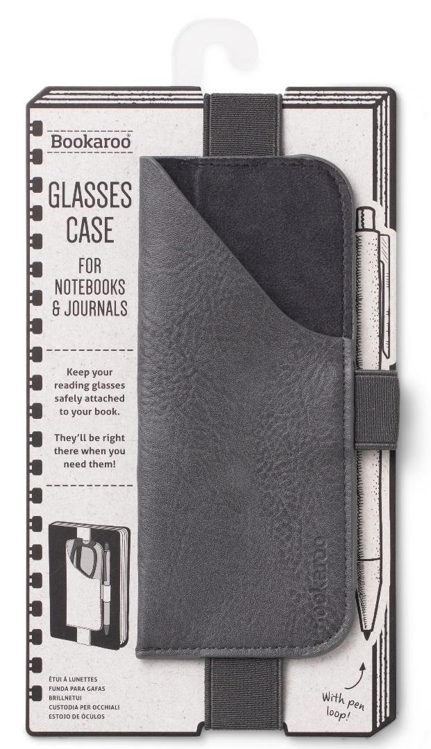 Bookaroo Glasses Case Etui na okulary mocowane do książki Genialne etui, które przyczepiasz elastyczną taśmą do okładki książki lub notesu A5. Miękko wyściełane welurem, wykonane z wysokiej jakości PU w skórzanym efekcie. Pasuje do okularów do czytania i wielu okularów przeciwsłonecznych. Koniec z gubieniem okularów! Dostępny w wielu eleganckich kolorach. Must-have dla każdego czytelnika!