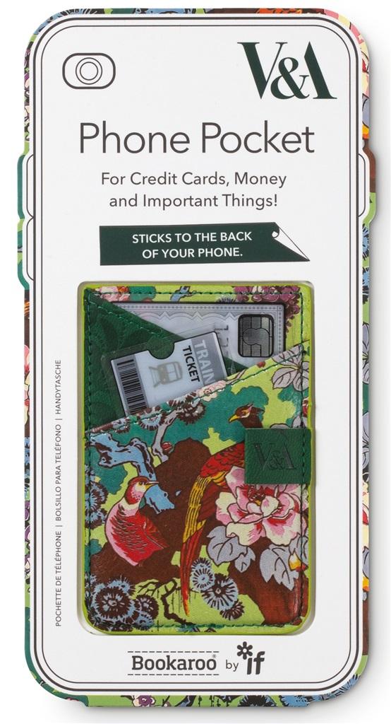 Portfel przyklejany na tył smartfona. Pomieści karty kredytowe, pieniądze, bilety, czy też inne ważne przedmioty. Posiada 2 kieszenie i pasuje do większości rodzajów telefonów. Wzór z kolekcji V&A - Muzeum Wiktorii i Alberta.