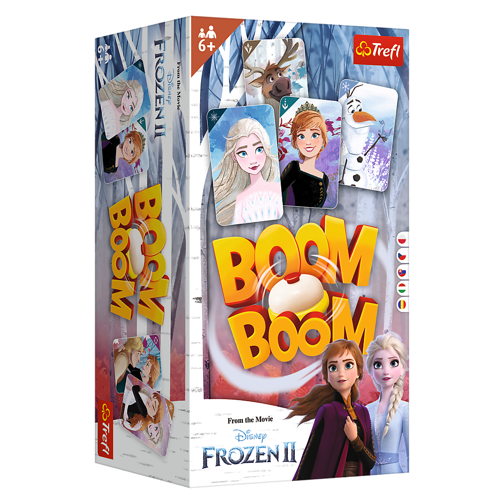 W nowej odsłonie gry Boom Boom gracze starają się zebrać identyczne karty z ulubionymi bohaterami z filmu Disney Kraina Lodu II. Wszyscy gracze w tym samym czasie wymieniają karty z ręki z kartami znajdującymi się na planszy. Po zebraniu zestawu 4 takich samych kart gracz uderza w dzwonek, sygnalizując innym wykonanie zadania. Gracze mogą polować na karty przeciwników kto okaże się najszybszy? Gracz, który jako pierwszy zbierze odpowiednie stosy takich samych kart, zostaje zwycięzcą!