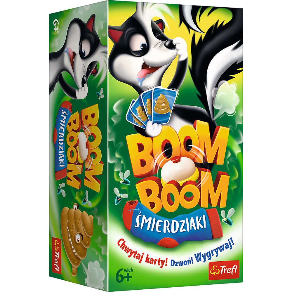 W Boom Boom gracze starają się uzbierać zestawy tych samych Śmierdziaków. Gracze wymieniają jednocześnie swoje karty z kartami na planszy. Po złapaniu 4 takich samych Śmierdziaków gracz uderza w dzwonek i sygnalizuje zebranie gotowego stosu. Gracze mogą polować na karty tego samego typu, dzięki czemu rozgrywka jest jeszcze bardziej emocjonująca. Gracz, który zbierze wszystkie swoje zestawy Śmierdziaków, zostaje zwycięzcą!