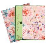 Zestaw prezentowy Wiosna zawiera pudełko upominkowe z wieczkiem ozdobionym motywem kwiatowym z subtelnymi złoceniami oraz idealnie dobranym kolorem metalizowane spody. Wewnątrz pudełka umieściliśmy pięć różnych, starannie dobranych romantycznych notatników. Kwiatowe okładki zdobione tłoczeniami złotą folią, tworzą piękną kompozycję graficzną, a kolorowe przeszycia grzbietów dopełniają wyjątkowy charakter i podkreślają znaczenie detali. Notatniki sprawdzą się jako pamiętnik, szkicownik lub miejsce na wszelkie codzienne notatki.