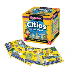 W jakim mieście można przekroczyć most Bosfor łączący Europę i Azję? Pojechać kolejką linową na Górę Stołową? Lub odwiedzić Hiszpańską Szkołę Jazdy? BrainBox Cities jest przeznaczony do zabawy z rodziną i przyjaciółmi, pomagając poprawić umiejętności obserwacji i pamięci, a także wiedzę na temat najbardziej znanych miast na świecie! Celem gry jest zbadanie karty przez 10 sekund, a następnie udzielenie odpowiedzi na pytanie na podstawie rzutu kostką. Jeśli odpowiedź na pytanie jest prawidłowa, karta jest przechowywana, a osoba z największą liczbą kart po 5 lub 10 minutach jest zwycięzcą.