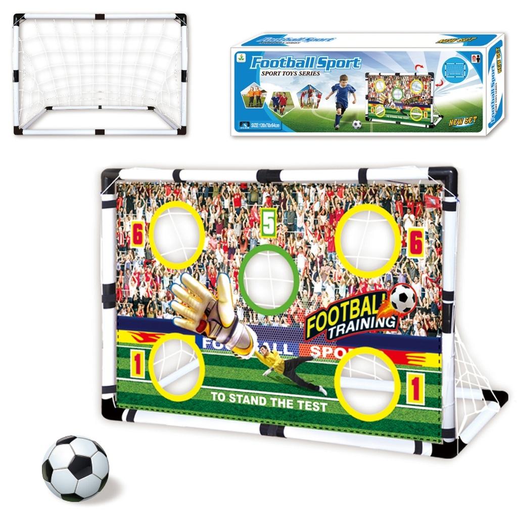 Super Zestaw Piłkarski do Treningu Celności - Bramka z Tarczą Strzelecką i Piłką Zapewnij swojemu młodemu piłkarzowi godziny wspaniałej zabawy i efektywnego treningu z naszym fantastycznym zestawem piłkarskim! Ten wszechstronny komplet łączy w sobie klasyczną bramkę do gry w piłkę nożną z interaktywną tarczą strzelecką, która pomoże doskonalić precyzję kopnięć. Kluczowe cechy produktu: Dwa w jednym: Zestaw zawiera solidną, składaną bramkę oraz specjalną nakładkę z tarczą strzelecką z otworami o różnej punktacji (1, 5, 6). Dzięki temu trening staje się bardziej angażujący i motywujący. Rozwój umiejętności: Ćwiczenie celności strzałów na tarczę pomaga w rozwijaniu koordynacji wzrokowo-ruchowej, precyzji i siły kopnięcia. Idealny dla młodych talentów: Bramka o wymiarach [tutaj możesz dodać przybliżone wymiary z opakowania, jeśli są widoczne] jest idealna dla dzieci i młodzieży, zarówno do zabawy na podwórku, jak i treningów piłkarskich. W zestawie piłka: Dołączona do zestawu piłka nożna pozwala na natychmiastowe rozpoczęcie zabawy i treningu. Łatwy montaż i przechowywanie: Lekka konstrukcja bramki umożliwia szybki montaż i demontaż, co ułatwia przechowywanie i transport. Atrakcyjny design: Żywe kolory i dynamiczna grafika tarczy strzeleckiej z motywem kibiców i piłkarza z pewnością zachęcą do aktywności fizycznej. Świetny pomysł na prezent: Ten super zestaw piłkarski to doskonały prezent dla każdego młodego fana piłki nożnej, który marzy o doskonaleniu swoich umiejętności. Wielkość opakowania : 58x20x8 Wielkość po rozłożeniu : 120x78x64 Zawartość zestawu: Składana bramka piłkarska Nakładka z tarczą strzelecką Piłka nożna Zainwestuj w pasję swojego dziecka i podaruj mu ten fantastyczny zestaw piłkarski, który zapewni mnóstwo radości i pomoże w rozwijaniu sportowych umiejętności!