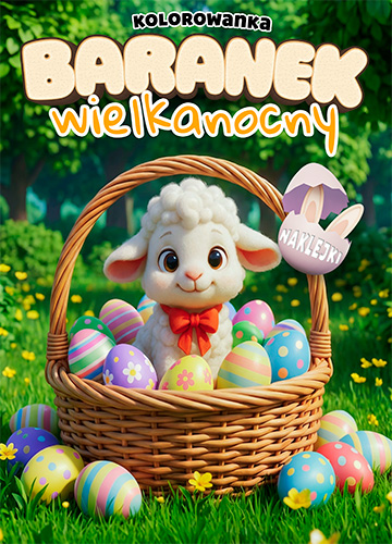 Radosna, wiosenna odsłona świątecznych zabaw. Bohaterem tej części jest sympatyczny baranek w otoczeniu kurczaczków, bazi i pierwszych kwiatów. Obrazki są duże i wyraźne, co ułatwia zabawę nawet młodszym dzieciom. Całość uzupełnia arkusz naklejek gratis – można nimi udekorować pokolorowane strony albo wykorzystać je do ozdobienia własnoręcznie robionych kartek świątecznych dla bliskich.