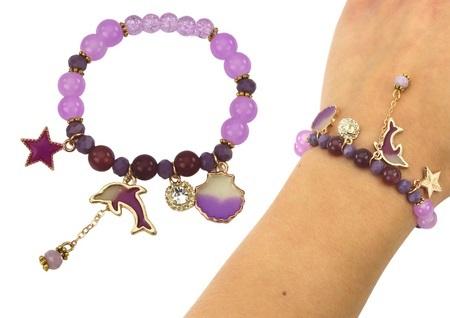 Bransoletka Na Gumce Delfin Gwiazdka Muszelka Fioletowa Bransoletka na gumce z delfinkiem to niezwykły dodatek dla dzieci, który zachwyca nie tylko swoim urokiem, ale także wygodą noszenia i możliwością dopasowania do każdej rączki. Wykonana z elastycznej gumki, zapewnia komfort noszenia oraz łatwe zakładanie i zdejmowanie. Jej urok tkwi w delikatnych fioletowych koralikach, które przeplatają się z złotymi elementami, dodając blasku i elegancji. Dodatkowo, zawieszki w kształcie muszelki delfinka i gwiazdki nadają bransoletce niepowtarzalnego wyglądu, inspirując do marzeń o podwodnym świecie i niezwykłych przygodach. Ta bransoletka nie tylko ozdabia rękę, ale także pobudza wyobraźnię i rozwija poczucie estetyki u dzieci. Daje im możliwość wyrażania swojego stylu i osobowości poprzez noszenie czegoś wyjątkowego i jednocześnie zabawnego. Idealna propozycja dla małych fanek ozdób i mody, ta bransoletka na gumce z delfinkiem to doskonały prezent na różne okazje, który sprawi radość każdej dziewczynce, dodając jej stylu i uroku. Wymiary opakowania: 9,5cm x 8cm x 1cm Posiada certyfikat CE, ponadto jest zgodny z normą EN71. Przeznaczony dla dzieci powyżej 3 roku życia.