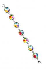 Bransoletkę z ludowym wzorem zdobią barwne kwiaty z łowickiej wycinanki na białym tle. Wzór ten inspirowany jest tradycyjnym wzorem ludowym z regionu łowickiego. Elementem przewodnim na łowickich wycinankach są koguty, pawie oraz motywy kwiatowe. Więcej informacji o łowickich wycinankach znajdziesz na naszym blogu magazyn.folkstar.pl