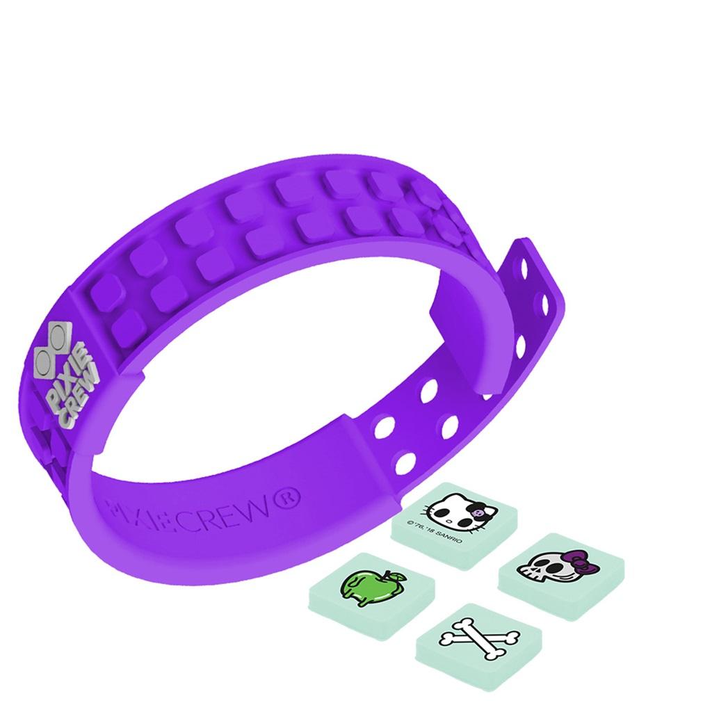 - Kreatywna silikonowa bransoletka PIXIE CREW fioletowa z 4 multipikselami z motywem Hello Kity.