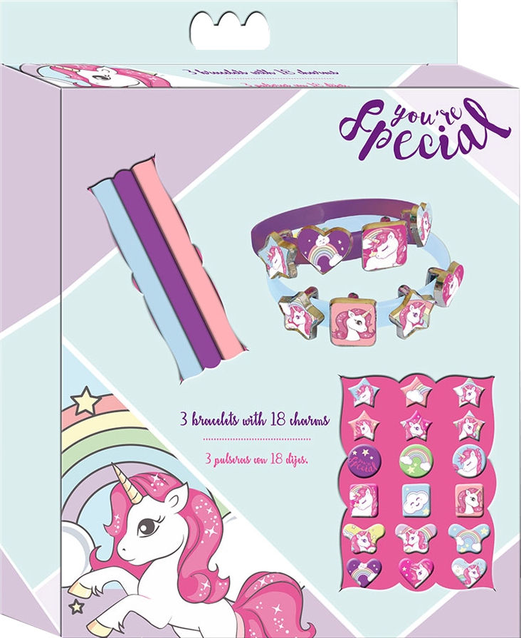 Zestaw bransioletek z zawieszkami z motywem Jednorożca, to idealny produkt na prezent dla dziewczynki.