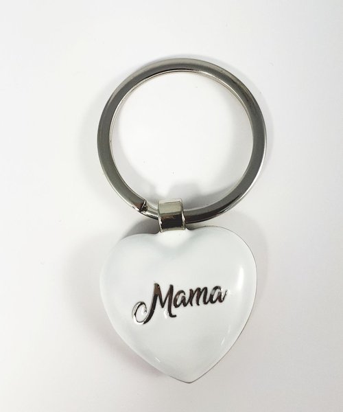 Breloczek do kluczy dla mamy. Drobny upominek nie tylko z okazji Jej święta. Jedna strona serduszka (z napisem Mama) jest w kolorze białym, druga natomiast złota. Wymiary (razem z kółeczkiem): 3cmx6,5cmx0,7cm