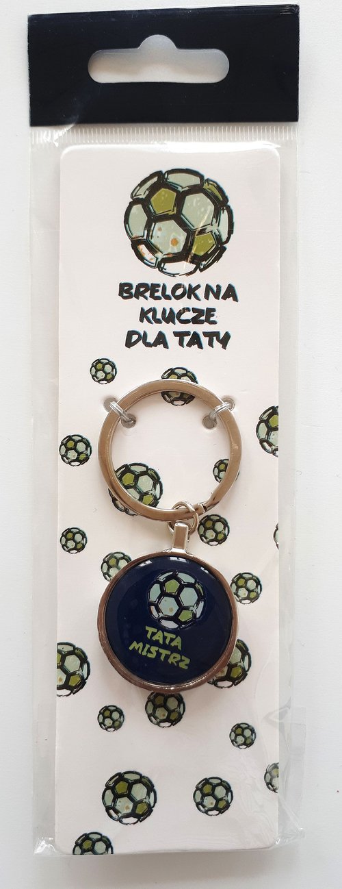 * mały breloczek do kluczy z dedykacją „Tata mistrz” * średnica breloczka – 3 cm * breloczek z jednej strony jest płaski z dedykacją, z drugiej wypukły o fakturze piłki * doskonały pomysł na drobny prezent dla Taty nie tylko z okazji jego święta
