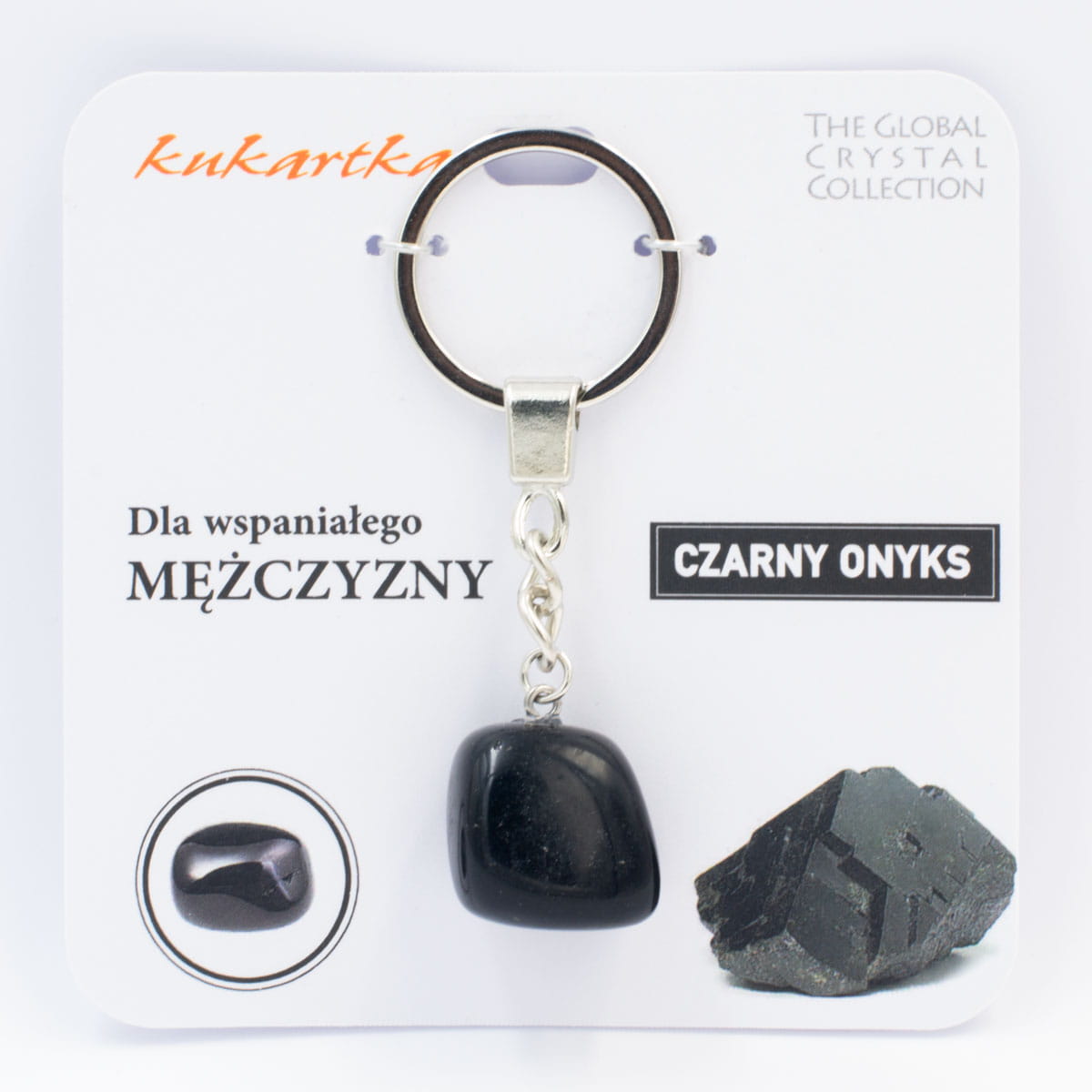 Brelok z kamieni naturalnych BKN-035 Dla wspaniałego mężczyzny Brelok dla kogoś wyjątkowego wykonany z naturalnego kamienia - czarnego onyksu, który chroni ciało, duszę i umysł. Czarny onyks jest zwany kamieniem mądrości. Jest symbolem siły, wytrwałości i determinacji. Pomaga przywrócić kontrolę nad własnym życiem, a także losem. Wymiary opakowania: 10 x 10 cm Długość breloka: 8 cm