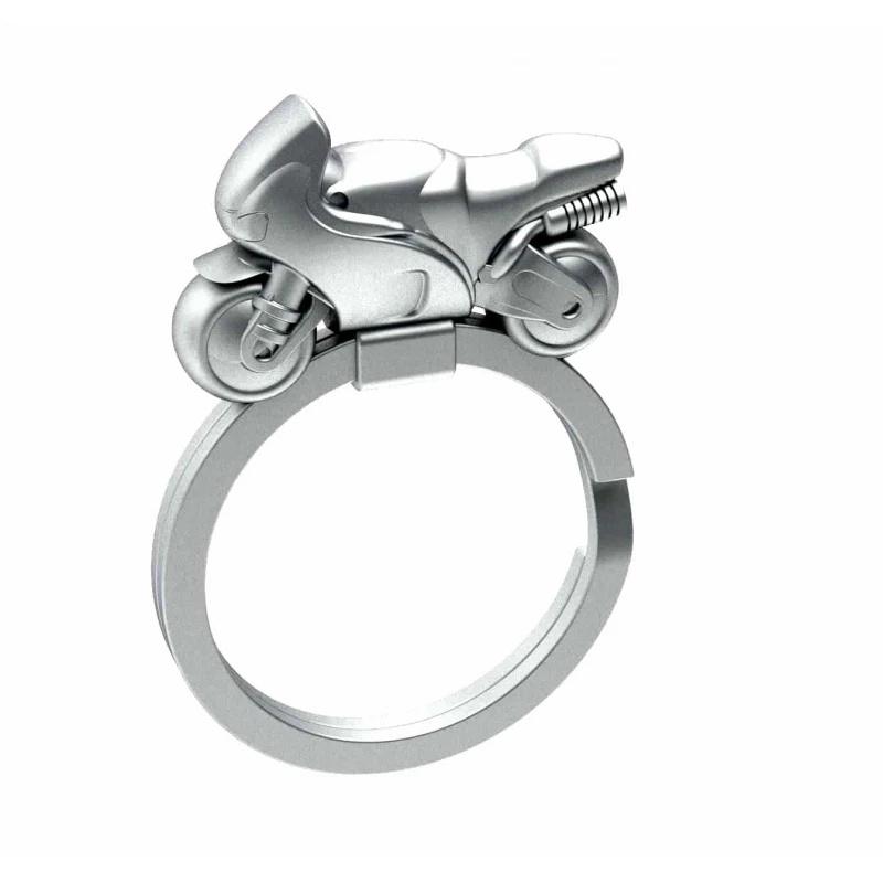 Ścigacz sunący przed siebie po kółku od kluczy. To skrócony opis przedstawiający brelok z motocyklem. Sprawdź go!