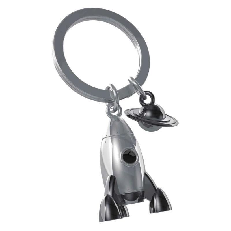 Rakieta kosmiczna i planeta Saturn zawieszone na kółku. Kosmiczny dodatek do Twoich kluczy