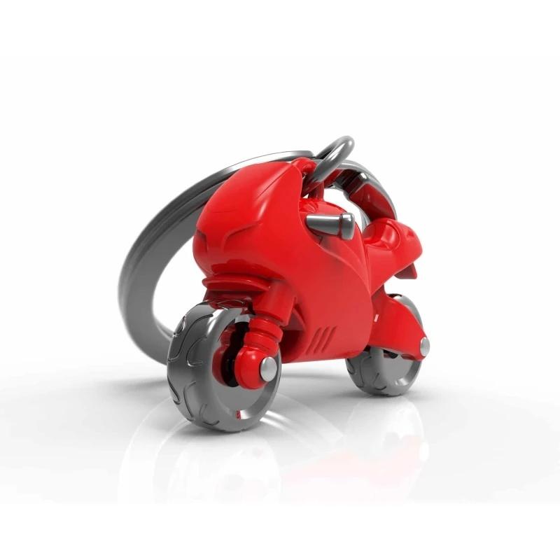 Krwistoczerwony lakier, czarne dodatki, dwa ruchome koła dają nam brelok czerwony ścigacz. Spraw swojemu motocykliście odjazdowy prezent.