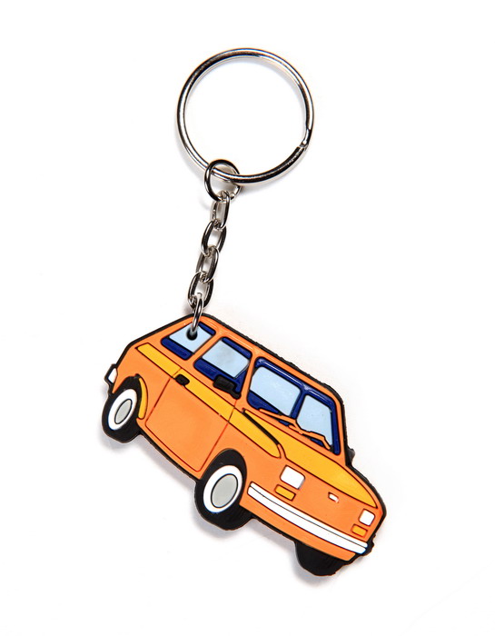 BRELOK GUMOWY AUTA PRL MALUCH POMARAŃCZOWY DWUSTRONNY