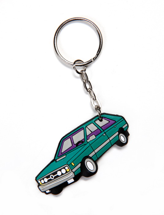 BRELOK GUMOWY AUTA PRL POLONEZ ZIELONY DWUSTRONNY.