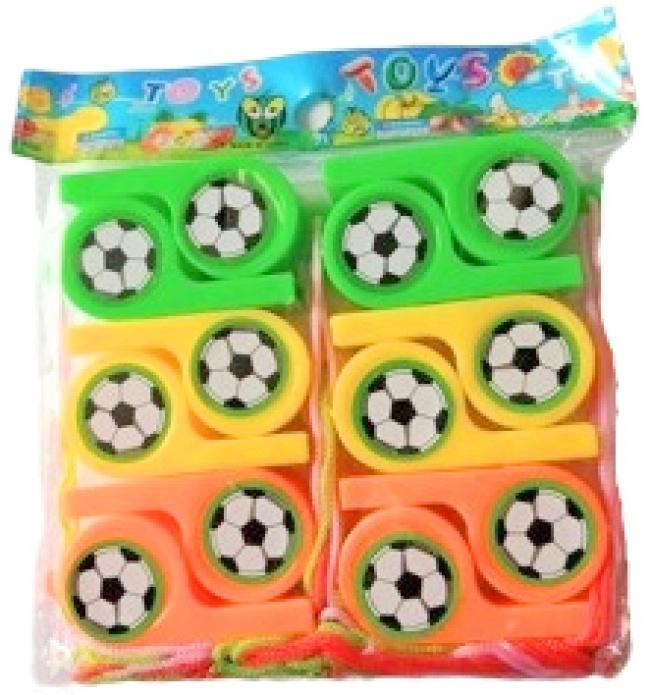 Przygotuj się na godziny wesołej zabawy z naszym zestawem 12 gwizdków z motywem piłki nożnej! Te kolorowe gwizdki, dostępne w odcieniach zieleni, żółci i pomarańczy, są idealnym dodatkiem do dziecięcych przyjęć, imprez sportowych czy po prostu codziennych zabaw w ogrodzie. Każdy gwizdek ozdobiony jest grafiką piłki nożnej, co z pewnością zachwyci małych miłośników futbolu. Gwizdki są lekkie i poręczne, zaprojektowane z myślą o małych rączkach. Doskonałe jako drobne upominki, nagrody w konkursach lub uzupełnienie szkolnej wyprawki. Cena dotyczy całego opakowania zbiorczego zawierającego 12 sztuk.