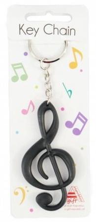 Brelok w kształcie klucza wiolinowego w kolorze czarnym, wykonany z gumy (wys. ok. 7,7 cm). Miły drobiazg dla muzyka i melomana.