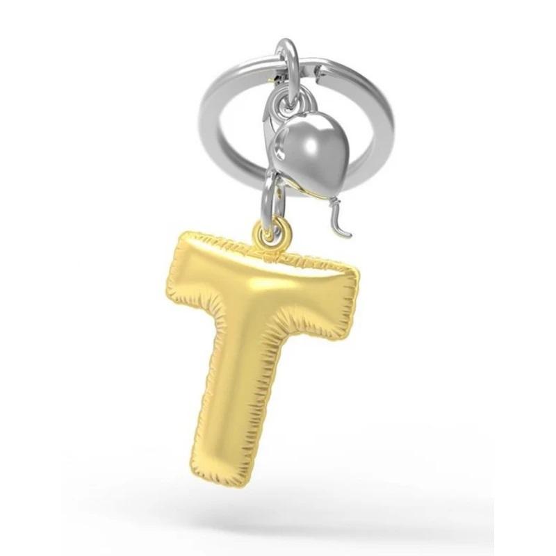 Brelok do kluczy litera T to kolejna propozycja marki Metalmorphose, brelok 2 w 1, może być brelokiem z 2 balonami, literą T i małym balonikiem lub brelokiem z małym, srebrnym balonikiem a balon z literą T zawieszką do torebki lub plecaka.