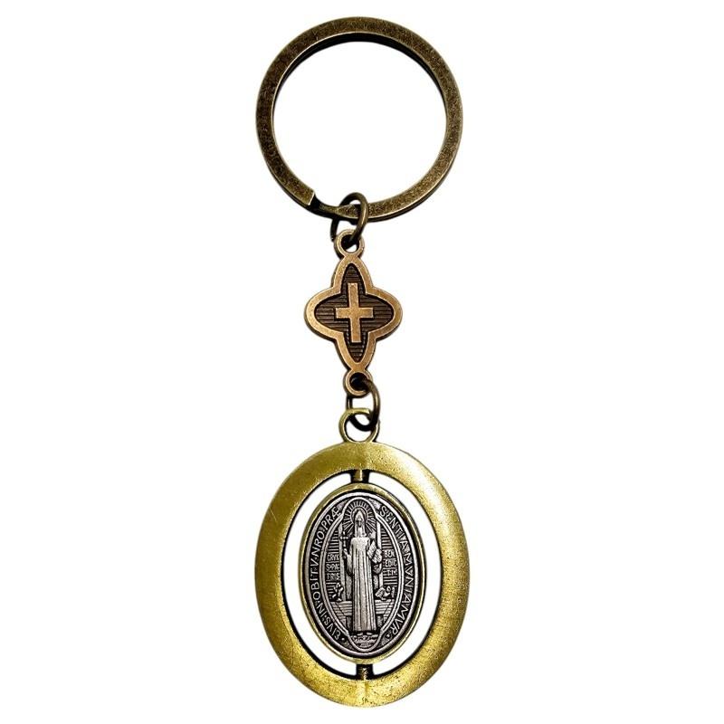 Obrotowy Brelok Święty Benedykt - Postać i Krzyż.