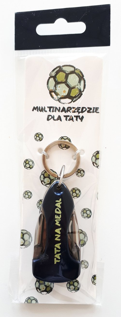 * multinarzędzie z dedykacją „Tata na medal” * posiada: - latarkę - nóż - śrubokręt krzyżakowy - śrubokręt płaski - otwieracz do butelek * spełnia również funkcję breloka, dzięki czemu może być zawsze „pod rękę” przyczepiony do paska, plecaka, itp. * doskonały pomysł na prezent dla Taty nie tylko z okazji jego święta * wymiary: 6cm x 3cm x 2cm