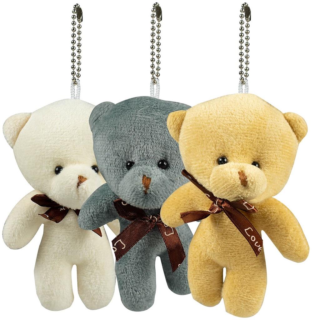 Brelok pluszowy miś z kokardą. Zabawny gadżet, podarunek na walentynki, urodziny. Breloczek do kluczy, plecaka, torebki. Dostępny w kolorze szarym, brązowym oraz białym. Brelok o wymiarze 11 cm.
