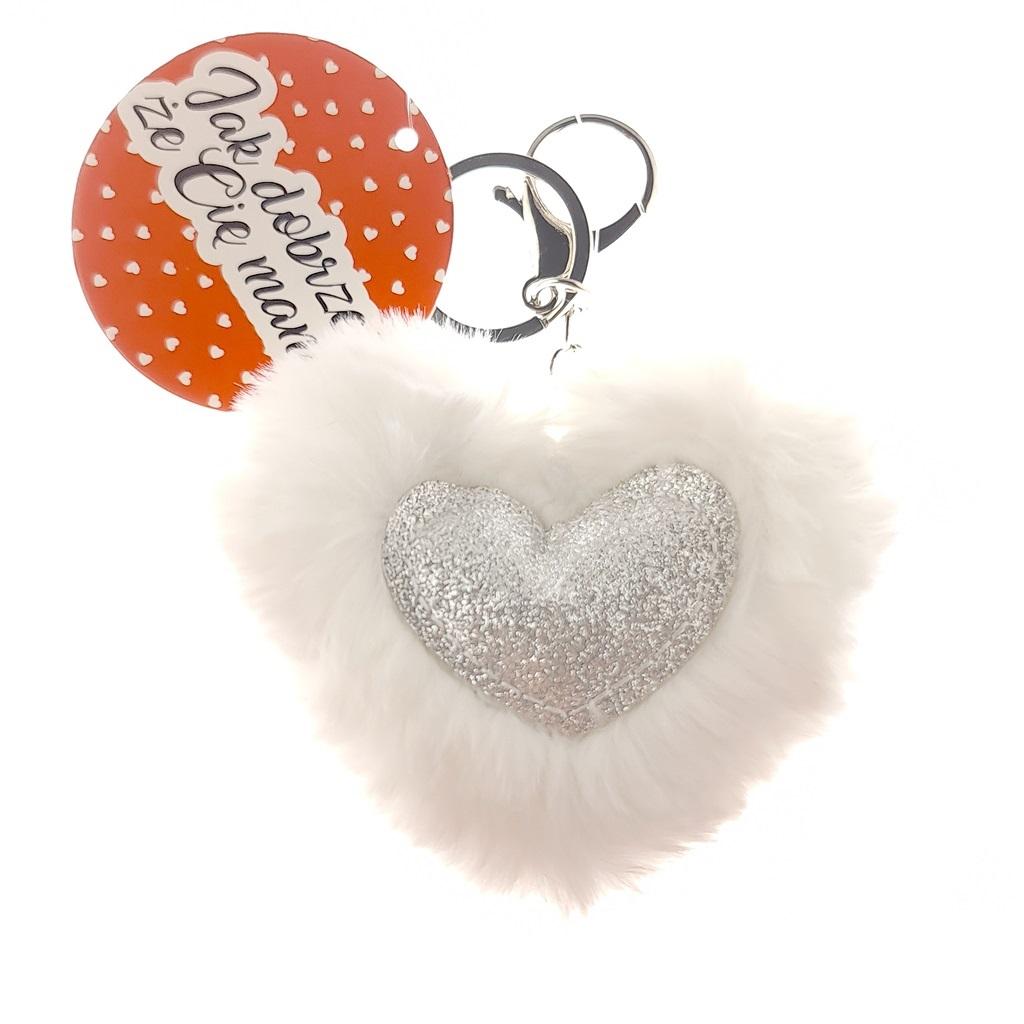 Opakowanie Brelok pompon serce brokat śmietankowy