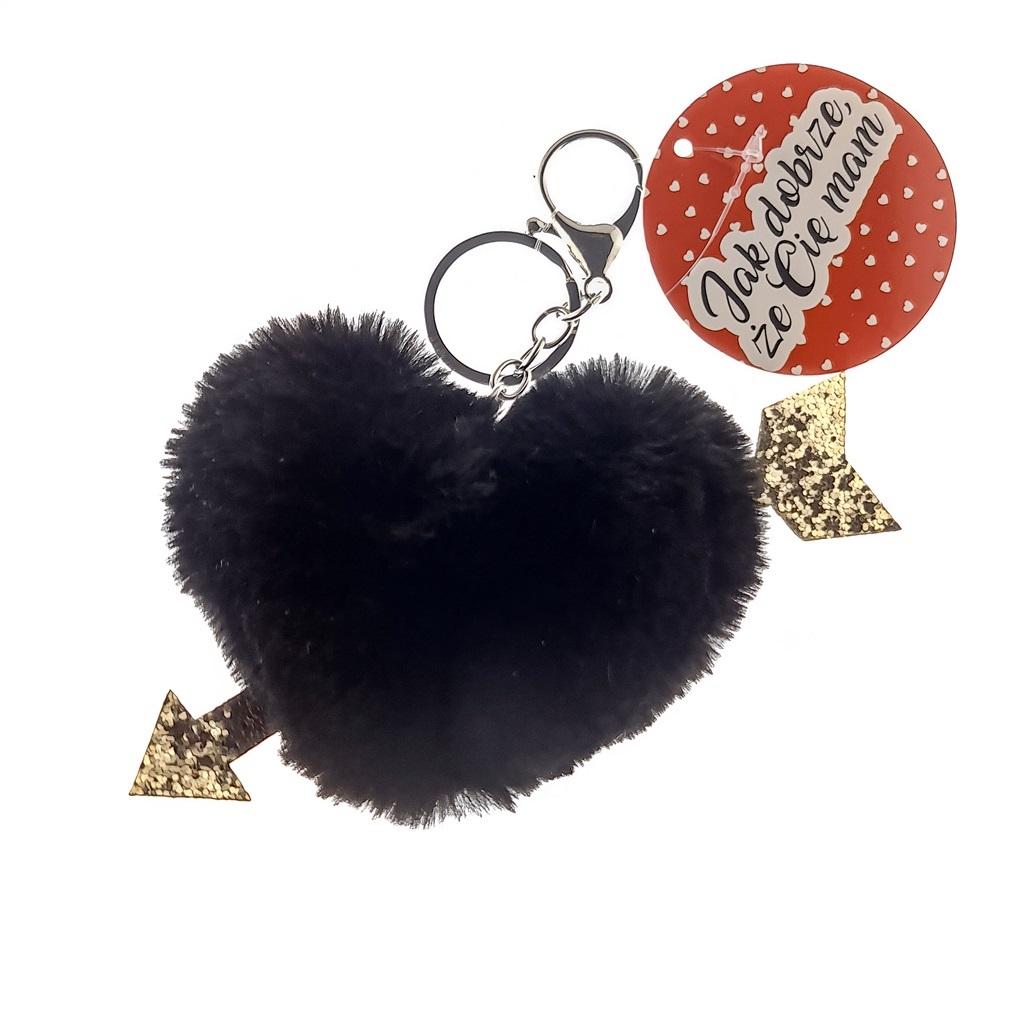 Brelok: pompon serce czarny.