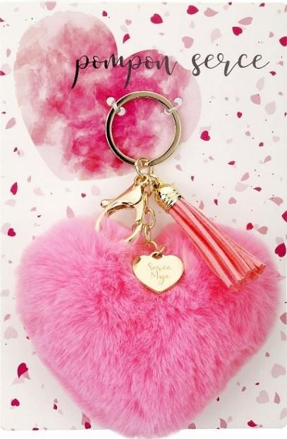 Opakowanie Brelok - pompon serce. Kocham (ciemonróżowe)