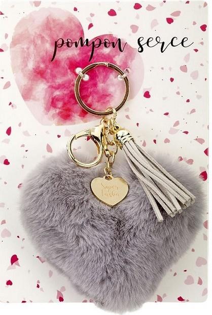 Opakowanie Brelok - pompon serce. Kocham (szare)