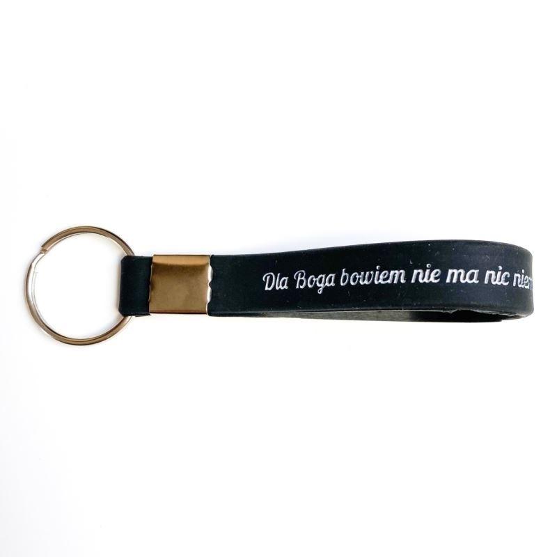 Brelok silikonowy o szerokości 1,2 cm z tekstem: Dla Boga bowiem nie ma nic niemżliwego. Łukasz 1,37