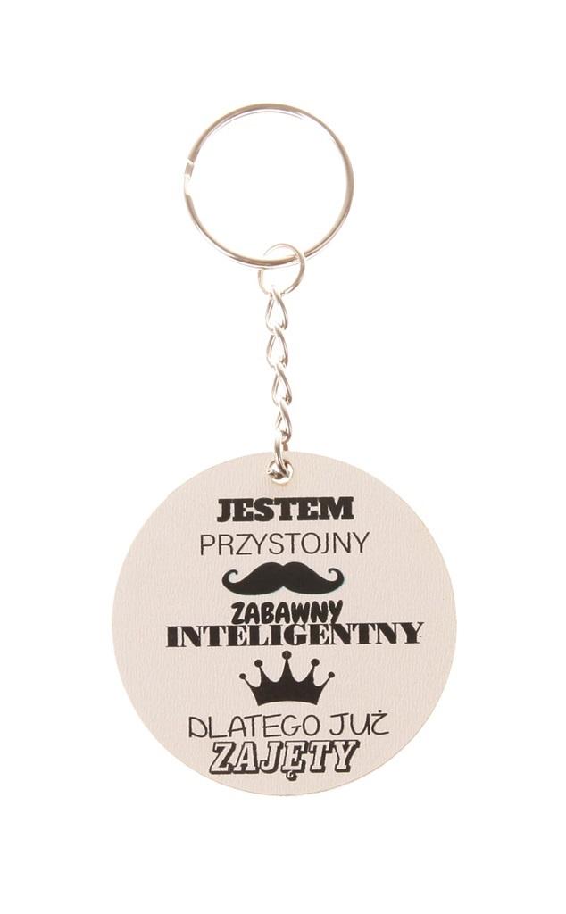 Breloczek z zabawną grafiką to nie tylko ciekawy pomysł na upominek, ale niezwykle funkcjonalny element, który można przyczepić do kluczy czy szkolnego plecaka. Drobny, miły prezent dla młodego mężczyzny nie tylko na Dzień Chłopaka, bowiem napis Jestem przystojny, zabawny, inteligentny, dlatego już zajęty czyni ten upominek uniwersalnym na różne okazje. Wykonany został z płyty MDF i ozdobiony jest piękną, kolorową grafiką, która nadaje mu wyjątkowego uroku. Nadruk jest wysokiej jakości, co czyni go trwałym w użytkowaniu. Wymiary całkowite ok. 10cm x 5cm. Brelok zapakowany w woreczek z eurozawieszką wraz z kodem EAN.