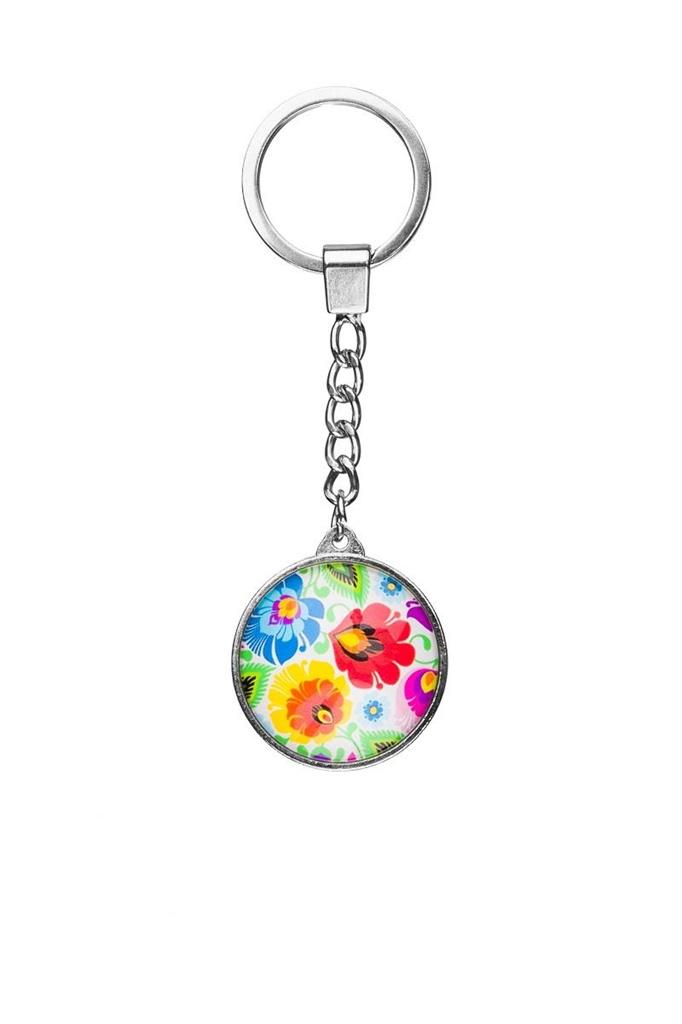 Brelok w ludowe wzory jest bardzo charakterystyczny i z łatwością znajdziesz go w torebce. Łowicki brelok to także świetny drobiazg jako pamiątka z Polski.