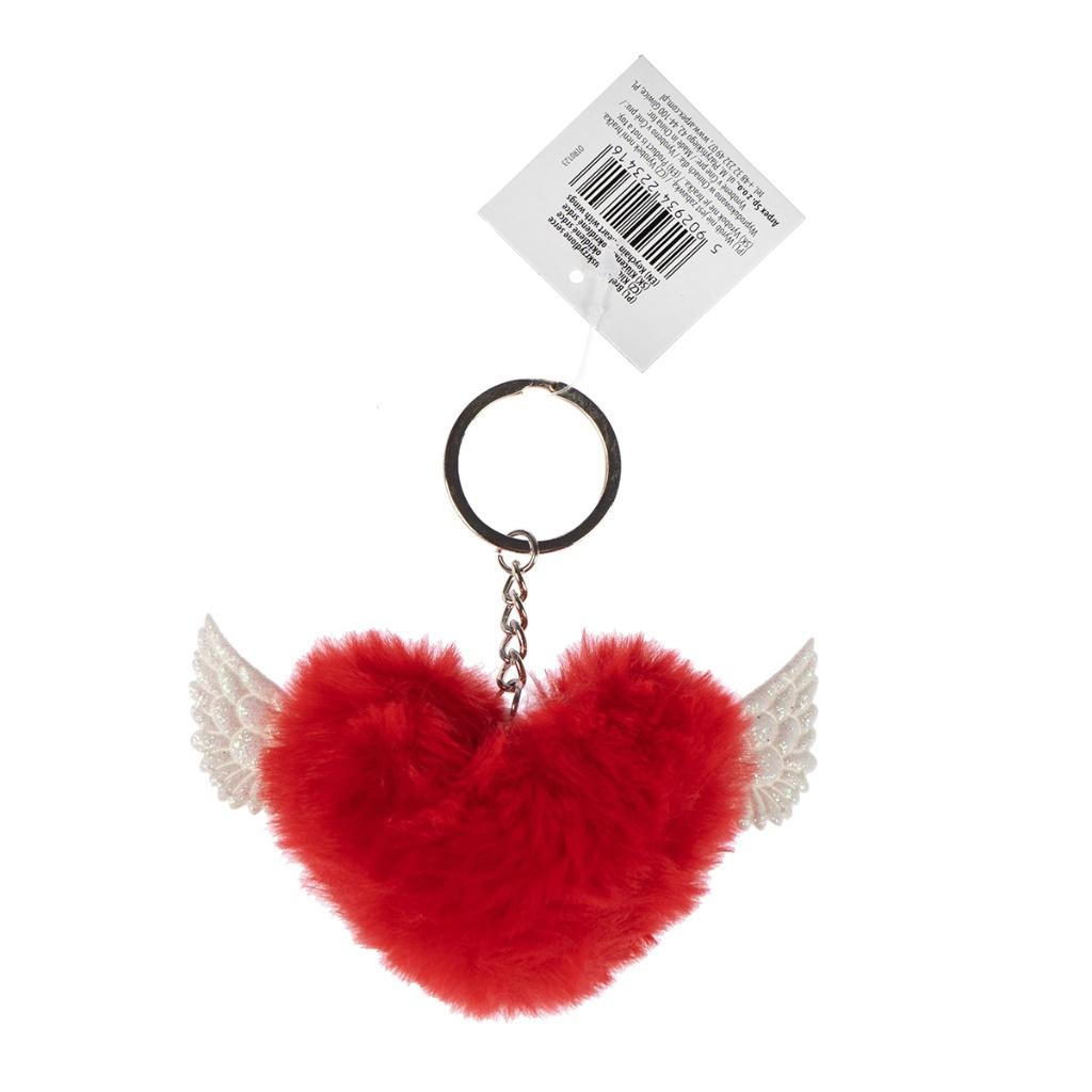 Breloczek z sercem ze skrzydełkami amora. Miękkie, materiałowe serduszko pokryte miłym w dotyku futerkiem. Uroczy gadżet idealny na podarunek na walentynki, a także ozdoba do kluczy, plecaka, torebki. Dostępny w kolorze czerwonym, różowym oraz fioletowym. Brelok o wymiarze około 11 cm