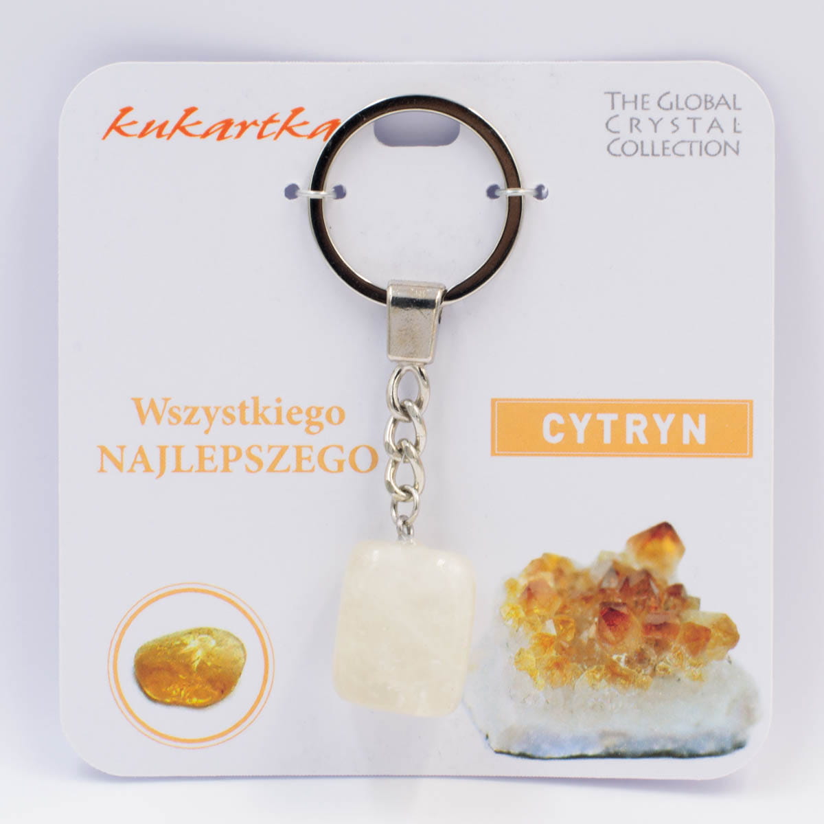 Brelok z kamieni naturalnych BKN-031 Wszystkiego najlepszego) Brelok dla kogoś wyjątkowego wykonany z naturalnego kamienia - cytrynu, który chroni ciało, duszę i umysł. Cytryn nosi miano kamienia sukcesu. Neutralizuje negatywną energię, pozwala odzyskać równowagę. Pomaga czerpać radość z życia i utrzymywać pozytywne myśli. Wymiary opakowania: 10 x 10 cm Długość breloka: 8 cm