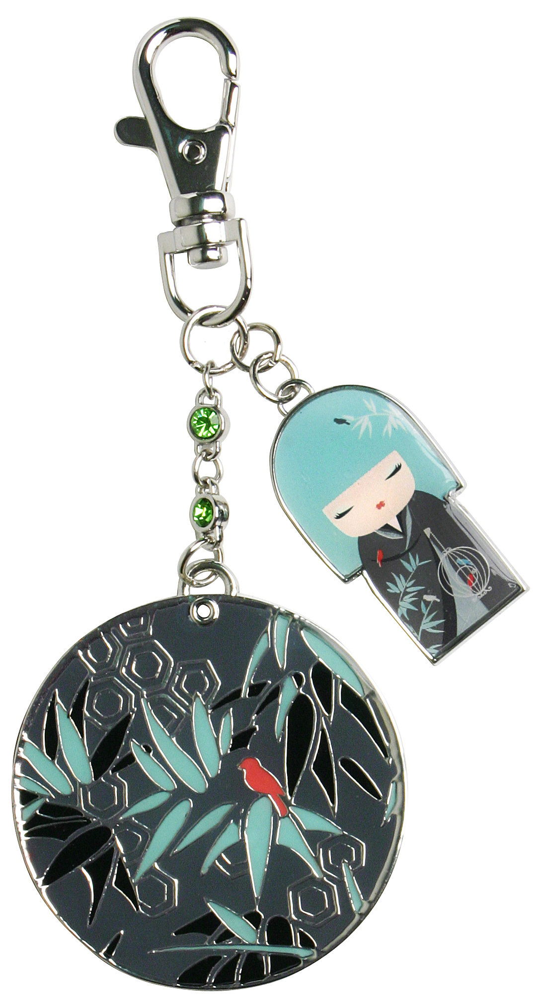 Brelok z kolekcji kimmidoll z wizerunkiem kokeshi NAGISA - spokojna, zakończony charms-em w postaci laleczki pokryty powłoką epoksydową i lusterkiem rozkładanym w rozmiarze 5 x 5 cm.Brelok posiada zaczep do torebki. Pakowany w eleganckie pudełko.
