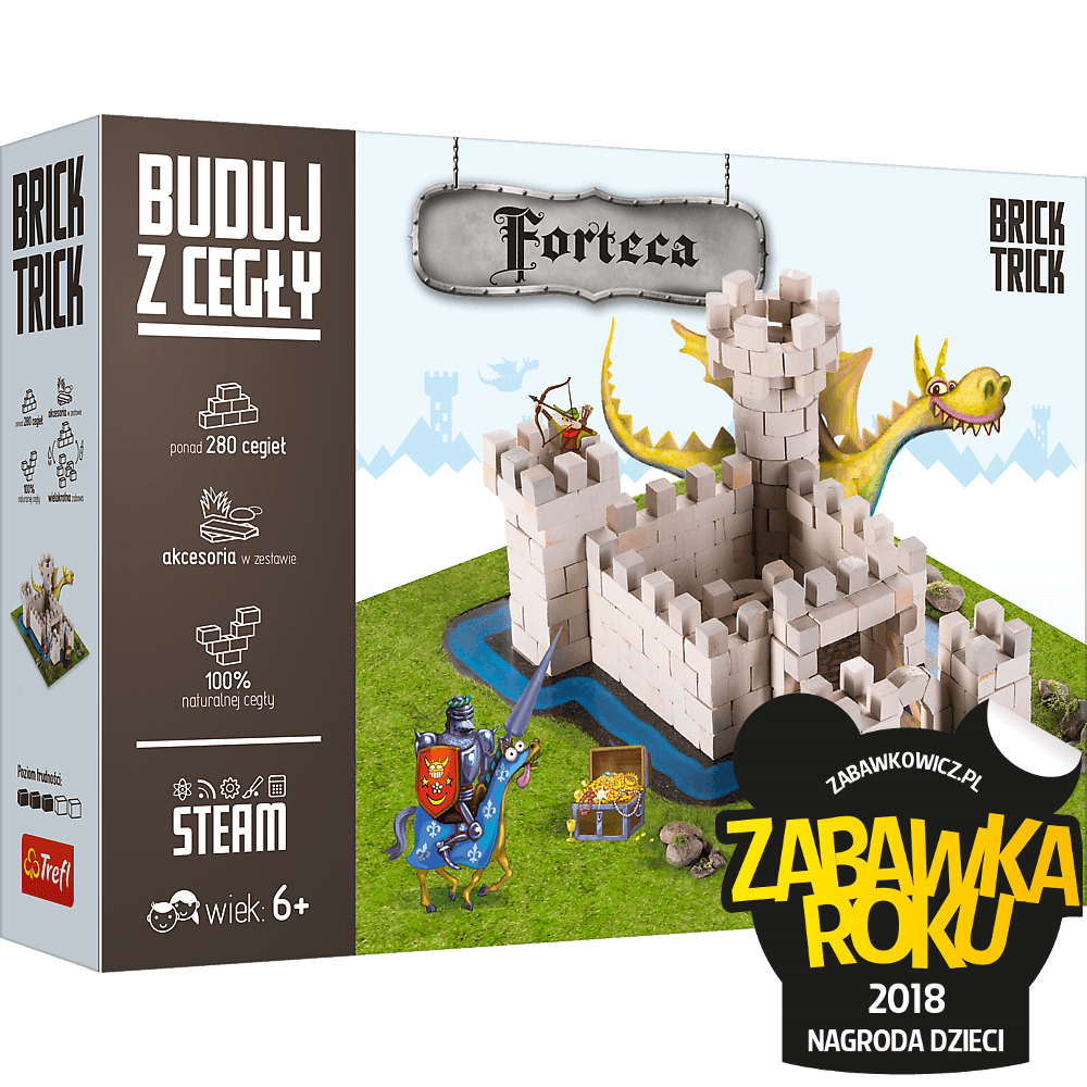 Brick Trick - Zabawa Murowana! Zostań konstruktorem, wykorzystując do budowy prawdziwe cegły i drewno! W instrukcji znajdziesz obszerne ciekawostki prosto z placu budowy. Dowiedz się, jak urozmaicić swoją konstrukcję dzięki wielu interesującym pomysłom i rozwiązaniom. Buduj według instrukcji lub użyj wyobraźni do stworzenia własnej, niepowarzalnej konstrukcji. Możesz też połączyć kilka budynków, tworząc klimat wsi, miasta lub średniowiecza. Wybuduj majestatyczną fortecę, wykorzystując prawdziwe białe cegły, drewno i elementy dekoracyjne jak trawę czy krzewy. Skorzystaj z dołączonych planów budowy lub użyj wyobraźni do stworzenia niepowtarzalnej konstrukcji. Baw się dołączonymi pionkami prosto z epoki średniowiecza! To nie koniec zabawy! Rozpuść konstrukcję w wodzie i buduj dalej wykorzystując ponownie te same cegły! W zestawie znajdziesz: prawdziwe cegły, klej, drewniane deseczki, elementy dekoracyjne, pionki, podstawkę, naklejkę i instrukcję!