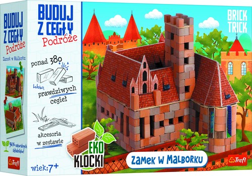 Zamek Krzyżacki w Malborku nie jest już niedostępną twierdzą! Seria Brick Trick Podróże umożliwia przeniesienie się w zamierzchłe czasy i zbudowanie od podstaw Zamku Wysokiego. Zestaw zawiera ponad 380 dedykowanych cegieł mozaikowych, które powstały z połączenia 3 kolorów gliny: czerwonej, białej i czarnej. Dołączone do opakowania elementy ozdobne w postaci trawy, mchu i kamieni dodatkowo udekorują budowlę. Precyzyjnie rozrysowane witraże i dachówki, jak również monumentalna konstrukcja tekturowego dachu pieczętują replikę Zamku w Malborku. Przekonaj się sam, że efekt końcowy zapiera dech w piersiach. Zestaw zawiera aż 96% naturalnych składników! Dla dzieci w wieku od 7 lat