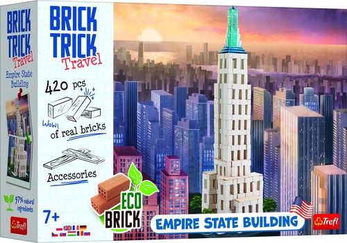 Empire State Building to nowojorski wieżowiec, jeden z najważniejszych symboli tego miasta, a nawet całego kraju – Stanów Zjednoczonych. Brick Trick Travel to kolejna odsłona klocków z cegły. Poznaj popularne i lubiane zabytki w EKO odsłonach i, co najważniejsze, stwórz je od podstaw. Podczas zabawy z produktami Brick Trick Travel dowiesz się wiele o tych budynkach. Od teraz zabytki z całego Świata mogą zagościć na Twojej półce! Dla dzieci w wieku od 7 lat