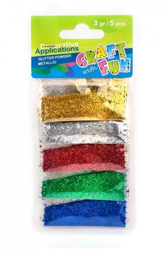 Brokat sypki w pięciu kolorach srebrny złoty niebieski czerowny oraz zielony.
