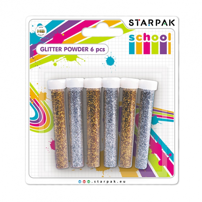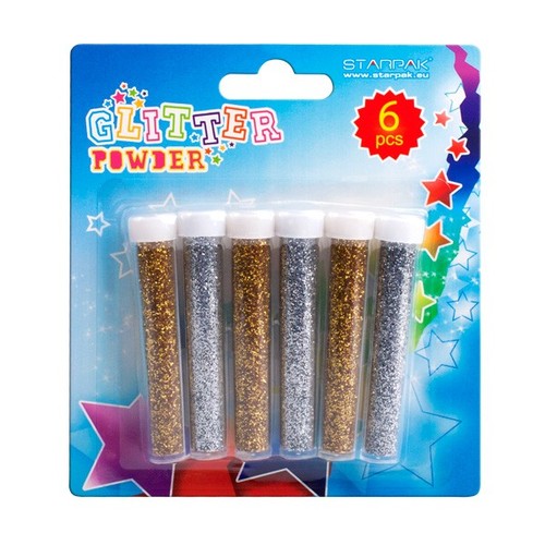 Doskonałej jakości sypki brokat, dostępny w intensywnych i żywych kolorach. Pozwala na ozdabianie dużych powierzchni wieloma mieniącymi się kolorami. 6 tubek po 4g.
