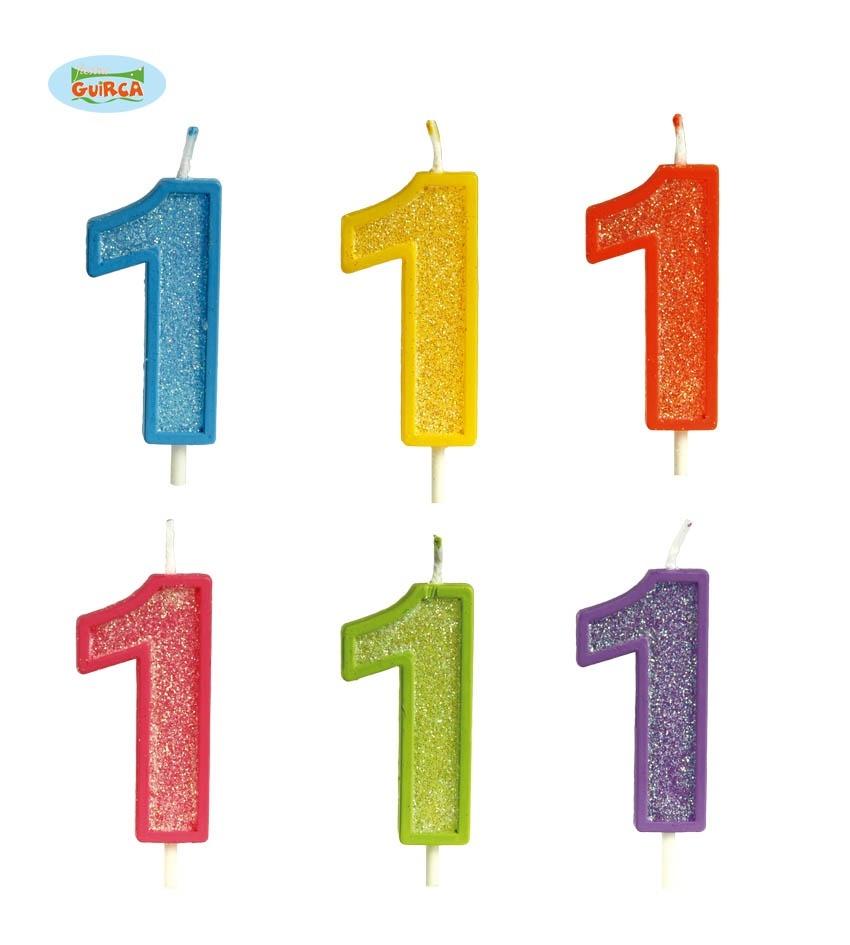 Śliczne brokatowe świeczki na tort cyfra 1, 4cm. Mix 6 kolorów