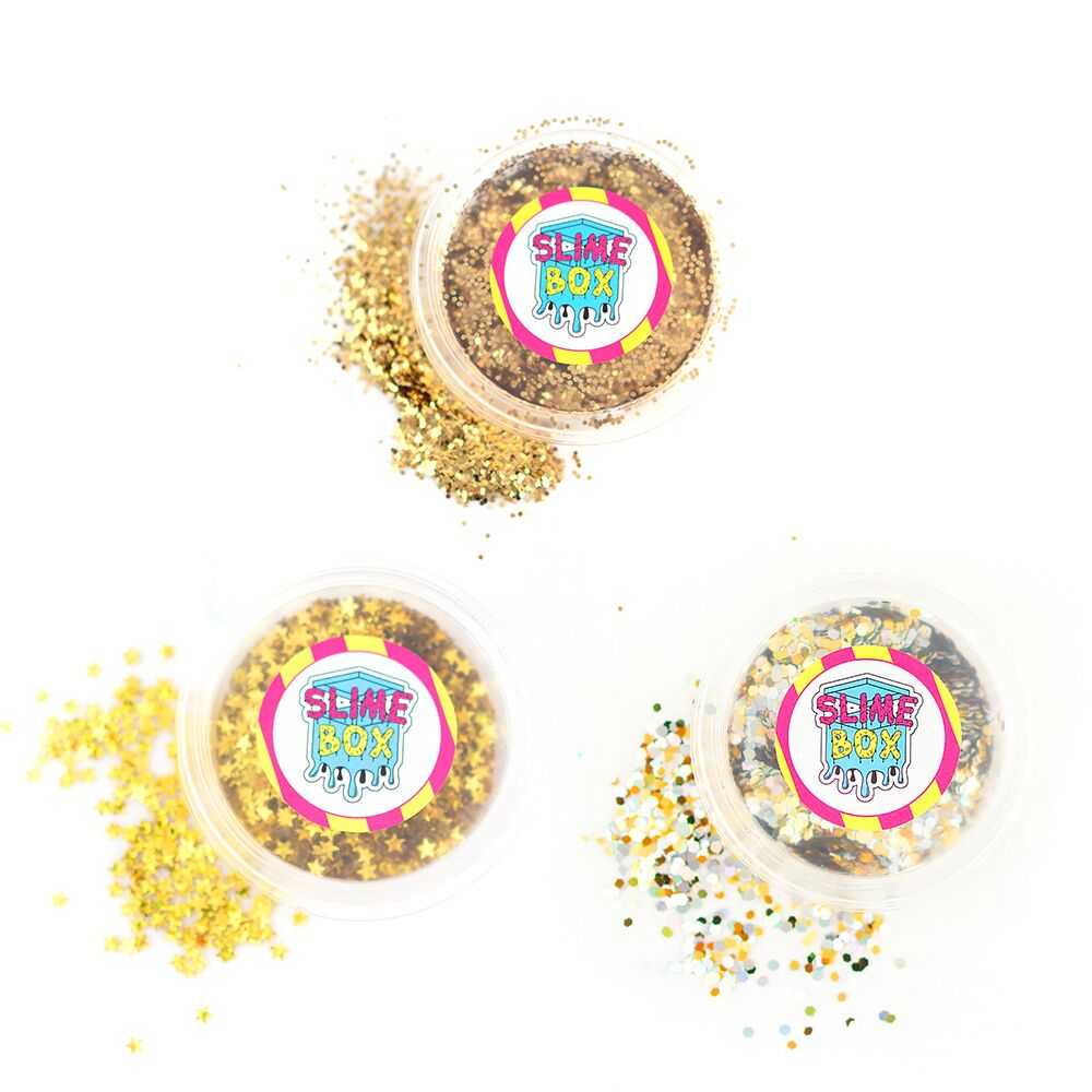 Zestaw trzech brokatów. Idealny do slime oraz prac kreatywnych i plastycznych. Przeznaczony do stosowania w domu lub pracowni plastycznej.