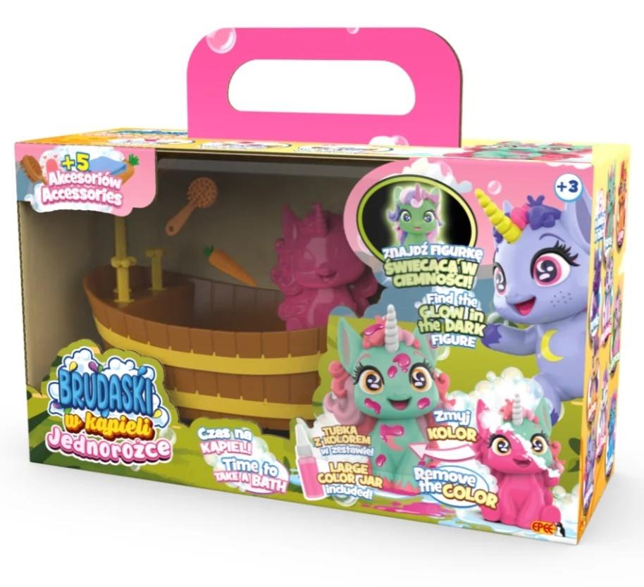 Brudaski w kąpieli Jednorożce to kolekcja uroczych jednorożców, które można brudzić błotkiem, myć i powtarzać to bez końca. Akcesoria dołączone do zestawów sprawią, że zabawa będzie jeszcze ciekawsza!