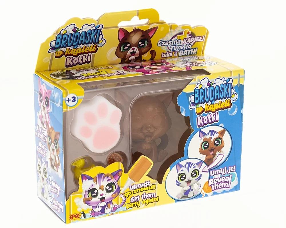 Poznaj kolekcję przesłodkich kotków, które można brudzić błotkiem, myć i zaczynać całą zabawę od nowa! Brudaski w kąpieli kotki to urocze figurki, które zostały stworzone po to, by zapewnić dzieciom mnóstwo radości i niezliczone możliwości kreatywnej zabawy. Dzięki specjalnej powłoce łatwo je wyczyścić, a zabawę ulepszą dołączone do kotków akcesoria.