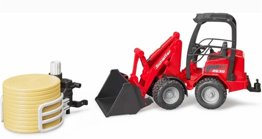 Ładowarka kompaktowa Schaffer Hoflander 2034 z akcesoriami rolniczymi - Bruder 02192 Skala 1:16
