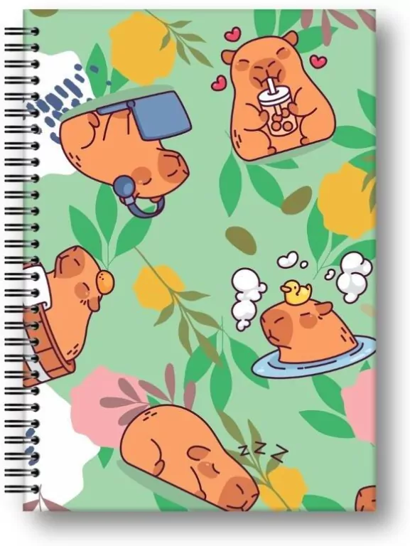 PENMATE Brulion A5 w twardej oprawie w spirali 80 kartek w kratkę T 0120 Kapibara Łąka folia mat nierysująca